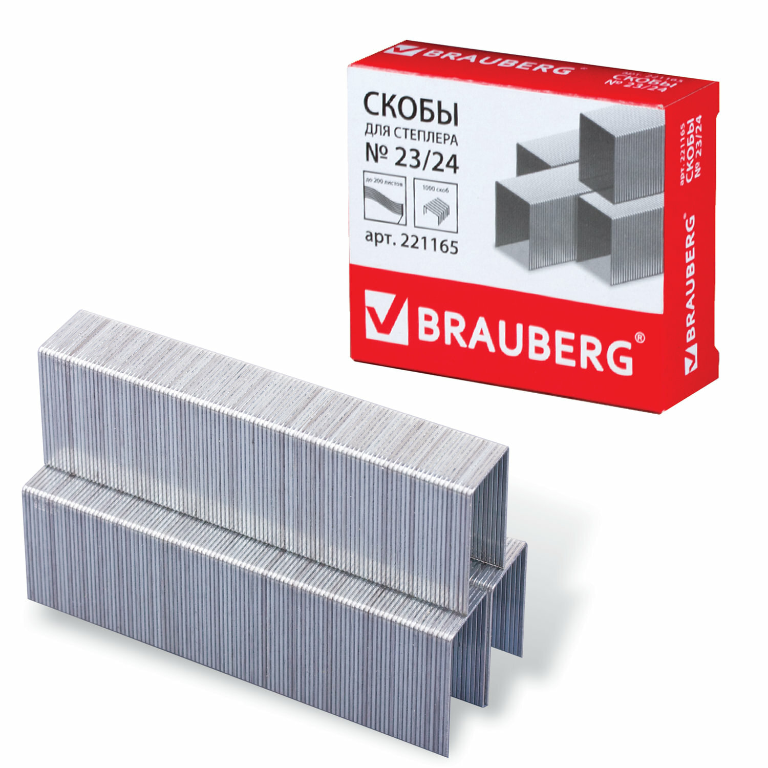 Скобы для степлера BRAUBERG, №23/24, 1000 штук, до 200 листов, 221165