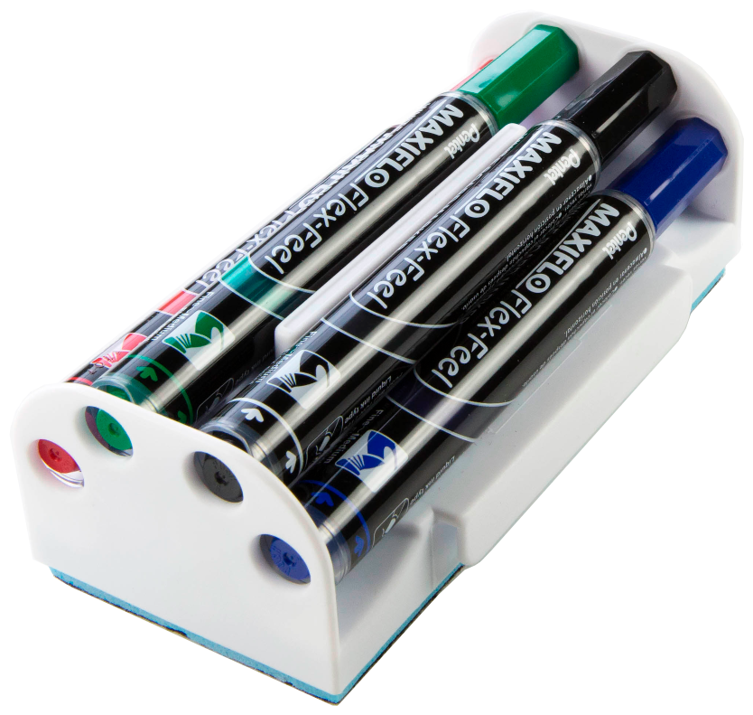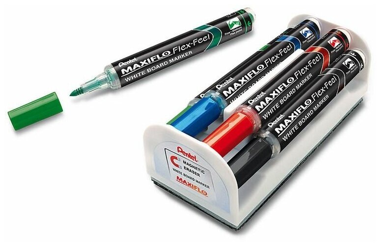 10 цен на Набор маркеров Pentel для досок, Maxiflo Flex-Feel, 5 мм кисть, 4 цвета, с магнитной губкой