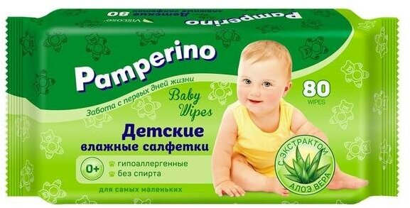 Влажные салфетки Pamperino Детские с экстрактом алоэ вера, пластиковая крышка, 80 шт., 1 уп.