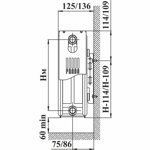 Радиатор стальной PRADO Classic 22/500/700 1512 Вт боковое подключение (+2 кронштейна)