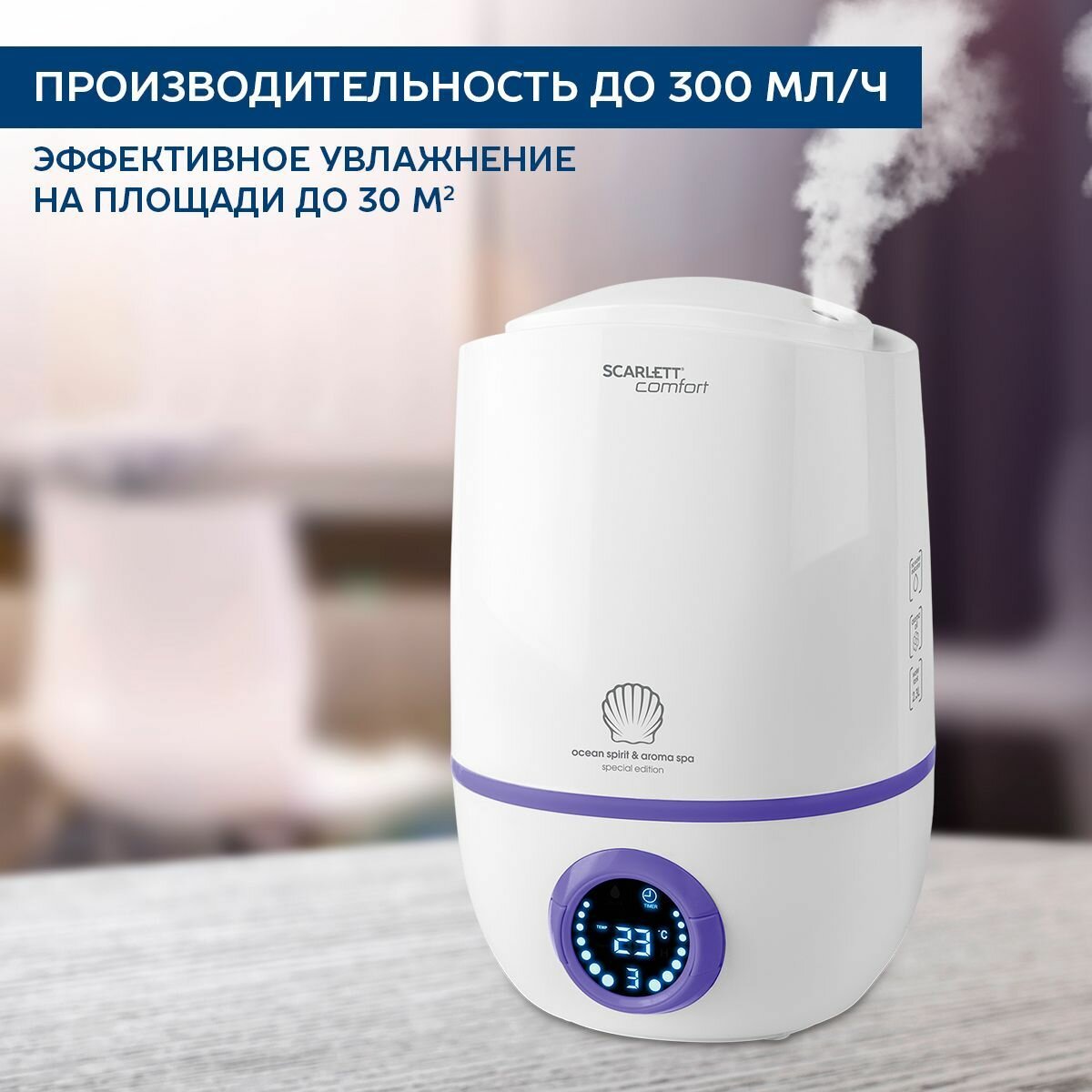 Увлажнитель воздуха с функцией ароматизации Scarlett SC-AH986E06, белый, фиолетовый информация:
