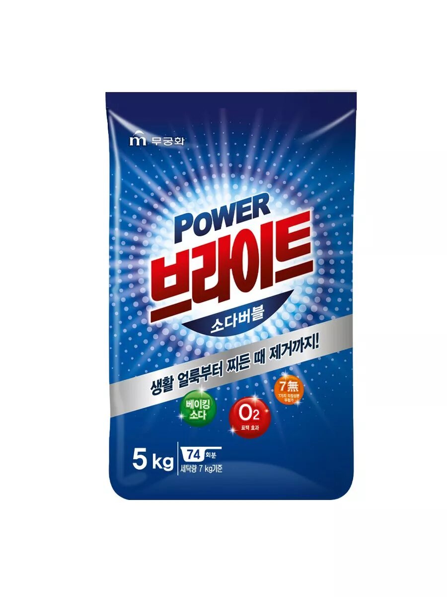 Mukunghwa Power Bright Стиральный порошок, с кислородным отбеливателем и содой, мягкая упаковка, 5,5 кг