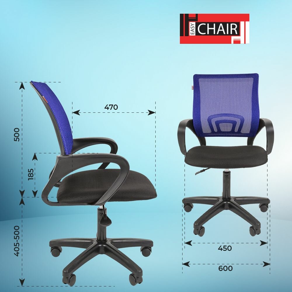 Кресло компьютерное Easy Chair 304 LT, офисный стул на колесиках, сетка/ткань, черный/синий информация:
