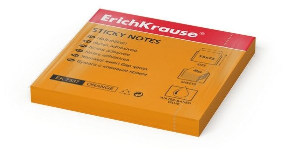 Отзывы на Клейкая бумага для заметок 75*75мм "Erich Krause" 70г/м2, неоновая оранжевая 7337