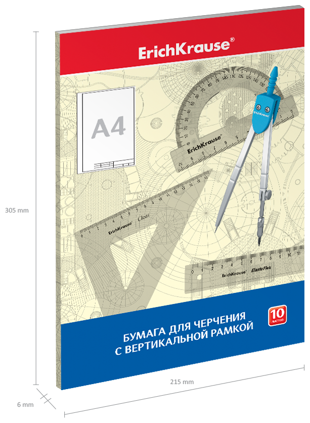 Бумага для черчения 10 листов с вертикальной рамкой информация:
