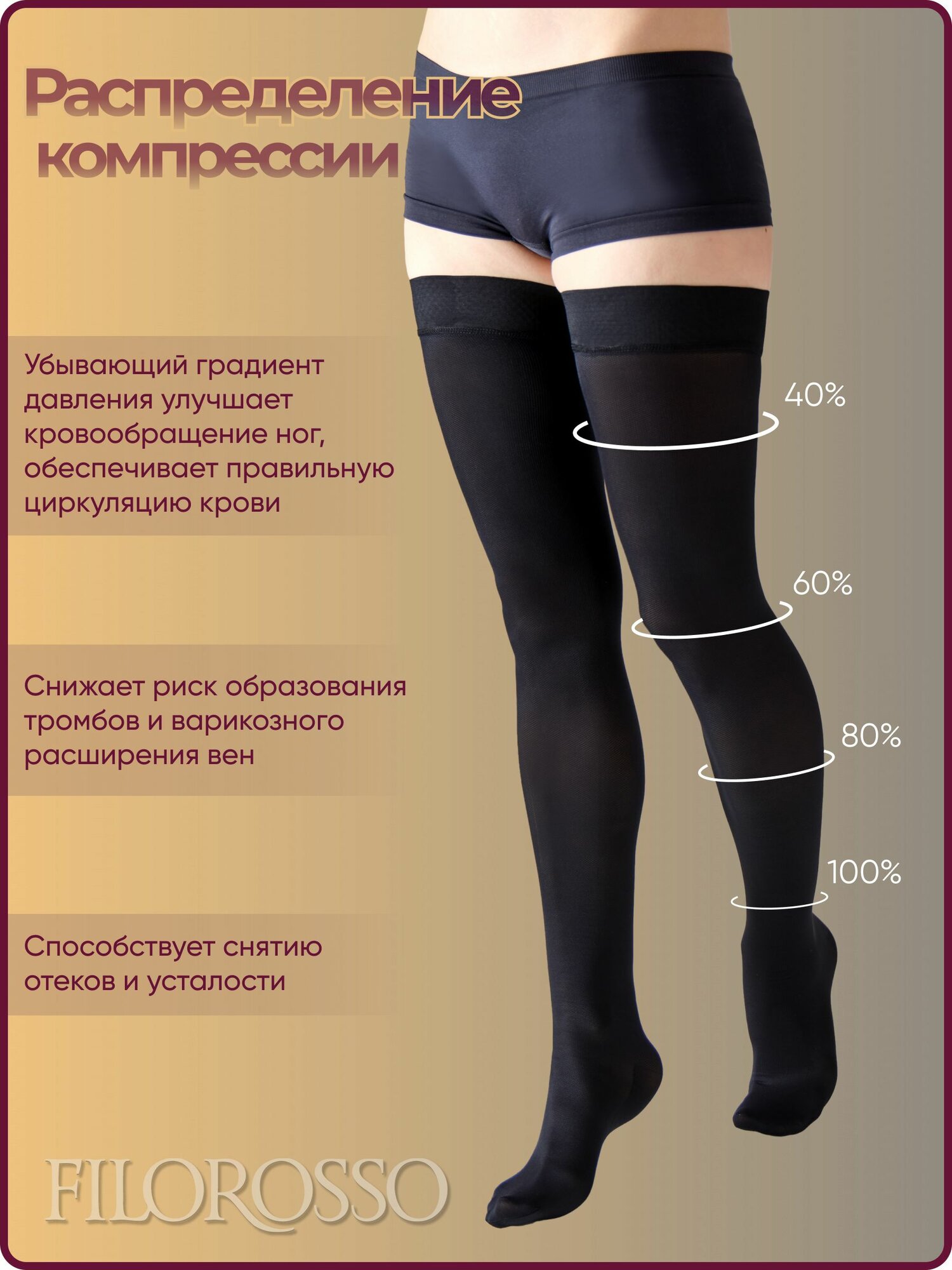 Отзывы на Чулки компрессионные Filorosso Terapia 50 den с силиконовой резинкой, 2 класс компрессии, черный, размер 5