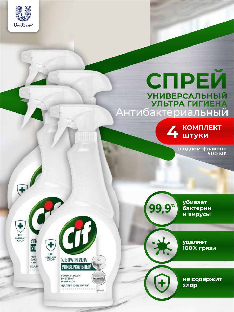 10 цен на CIF Универсальное чистящее средство Антибактериальный спрей 500 мл. х 4 шт.