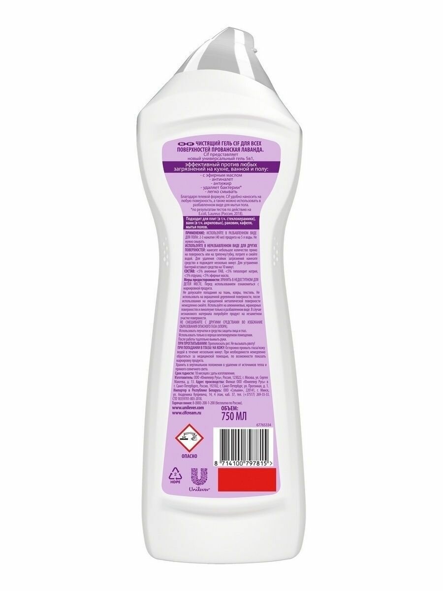 Чистящий гель для всех поверхностей Прованская лаванда 750мл информация: