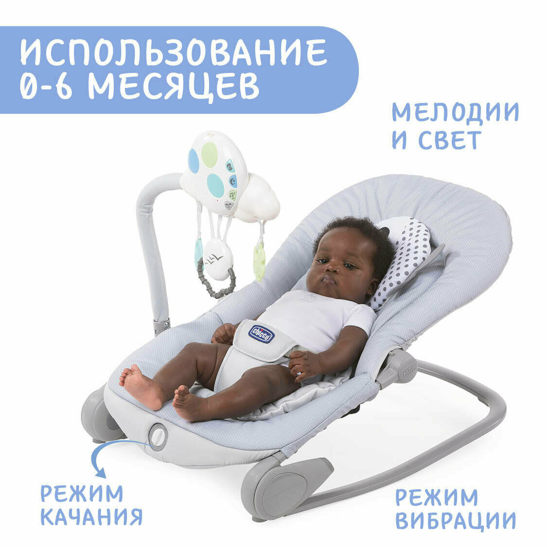 Креслице-качалка шезлонг для новорожденных CHICCO BALLOON DOTS 0-18 кг, серый информация: