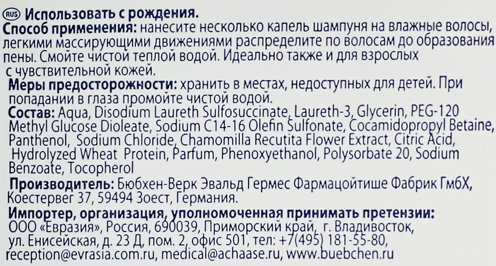 Bubchen Шампунь с экстрактом ромашки, 200 мл.