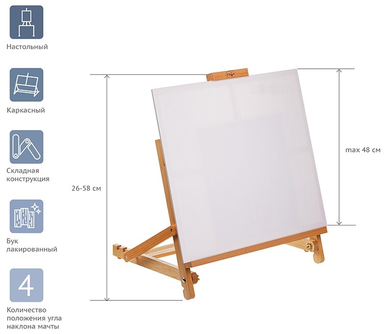 Мольберт настольный каркасный Гамма "Студия" 42*35*26 (58)см, бук информация: