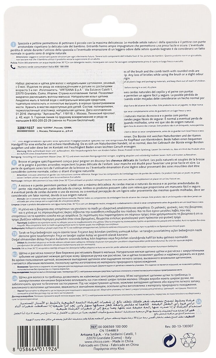 Расческа и щетка с натуральной щетиной Chicco, розовый 0+ информация: