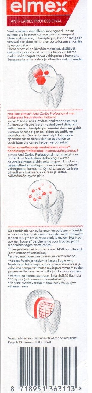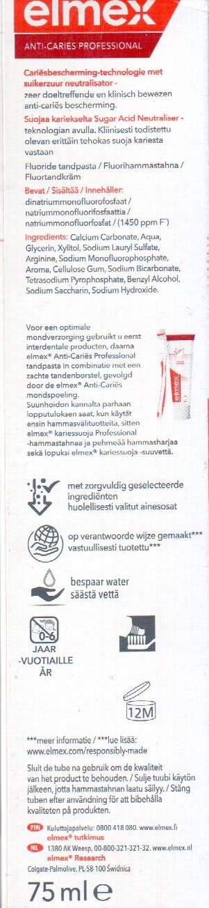 Elmex зубная паста Anti-Caries Professional Защита от кариеса, 75 мл (из Финляндии) информация: