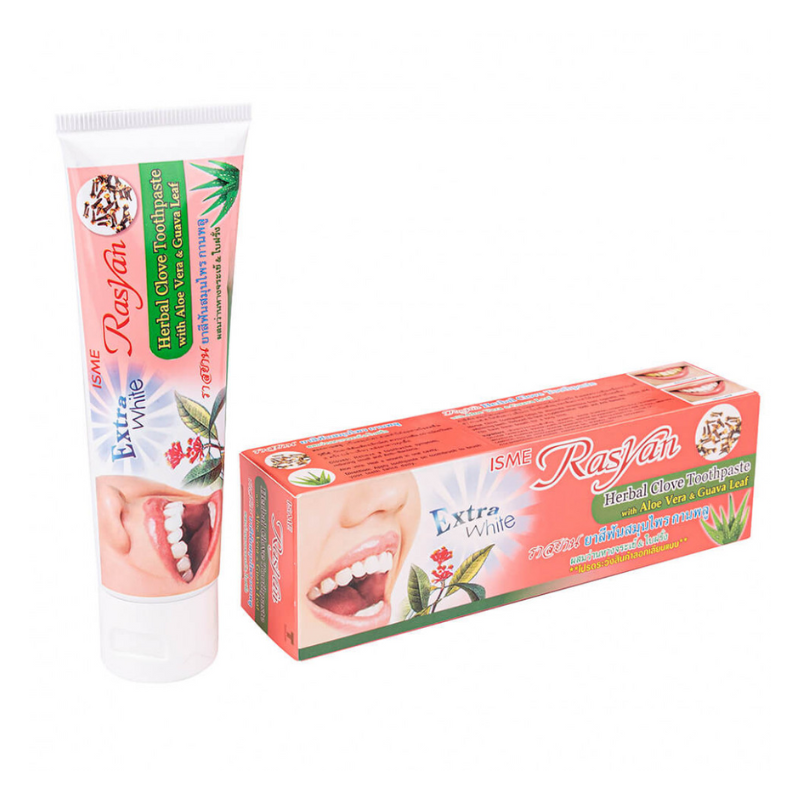 Отбеливающая Тайская зубная паста ISME Rasyan травяная гвоздичная с алоэ вера и листьями гуавы, 30 мл, 30 г