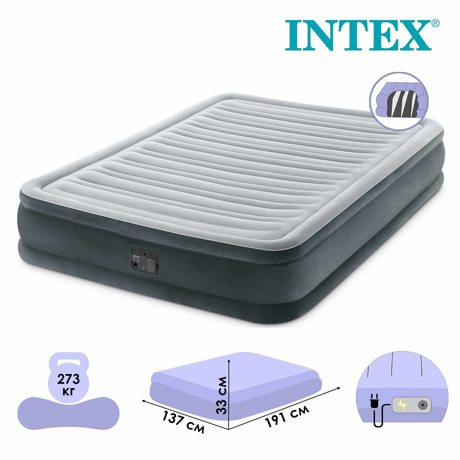 10 цен на Надувная кровать 137х191х33см "Comfort-Plush" встр.нас. 220В, до 272кг