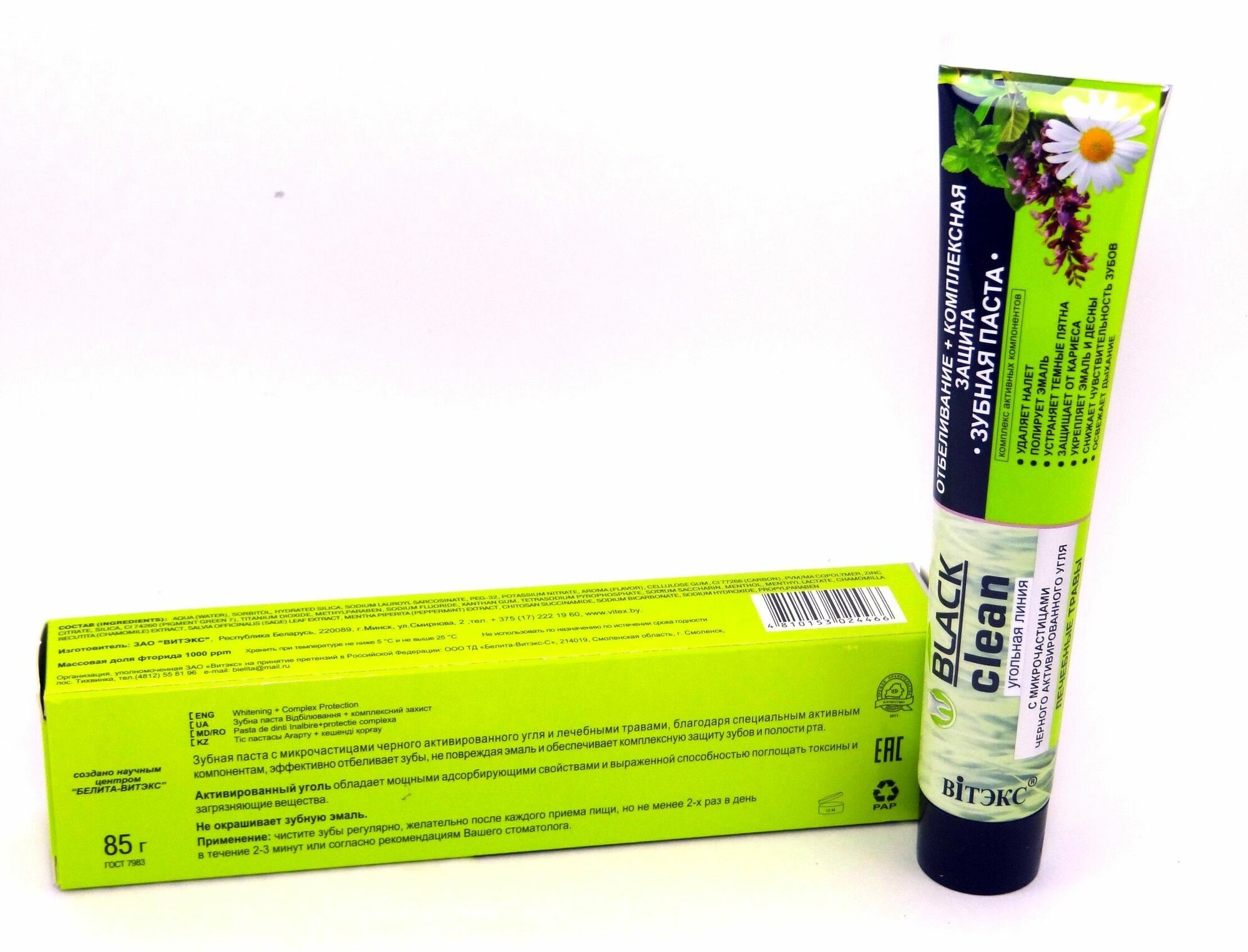 Зубная паста Белита-Витекс "Black Clean", Отбеливание и комплексная защита, 85 г
