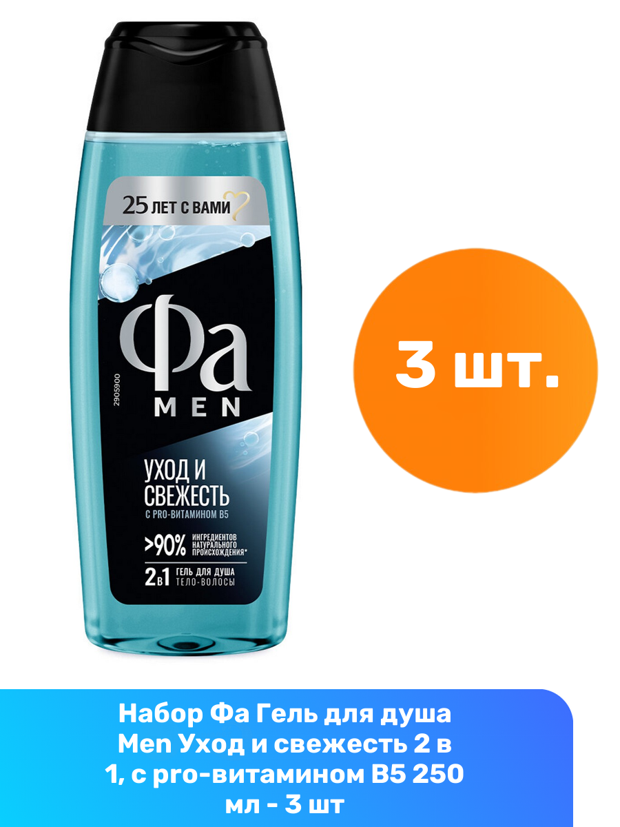 Фа Гель для душа Men Уход и свежесть 2 в 1, с pro-витамином B5 250 мл - 3 шт информация: