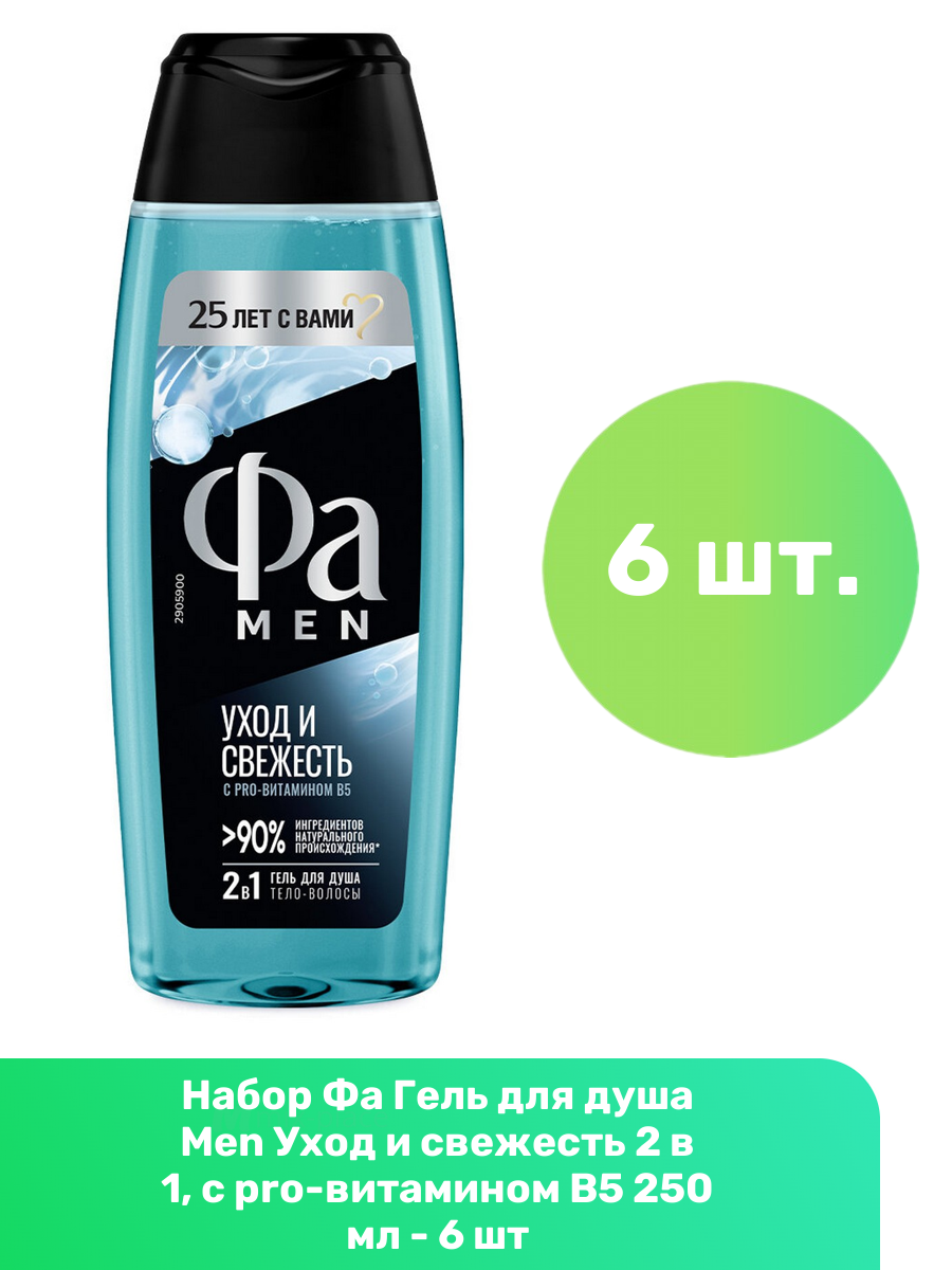 Отзывы на Фа Гель для душа Men Уход и свежесть 2 в 1, с pro-витамином B5 250 мл - 6 шт