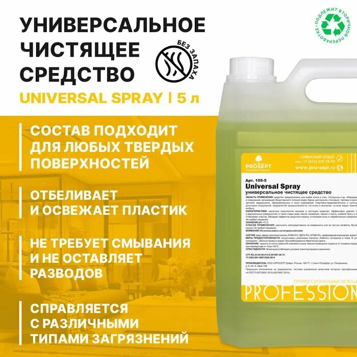 Универсальное моющее и чистящее средство Universal Spray, готовое к применению, 5 л PROSEPT 1284631 .