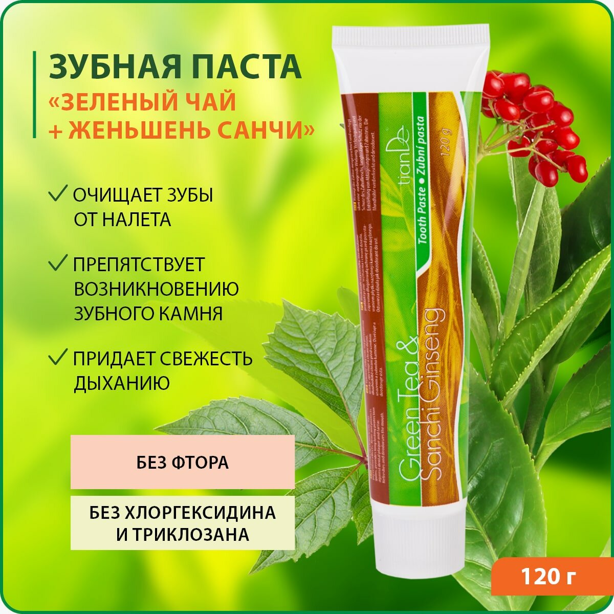 Зубная паста "Зеленый чай + женьшень Санчи" информация: