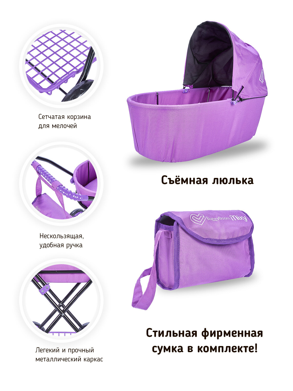 Коляска для кукол Микси, "Багги Бум" (Mixy, "Buggy Boom") с капюшоном и сумкой, в п 62x34x9 см информация: