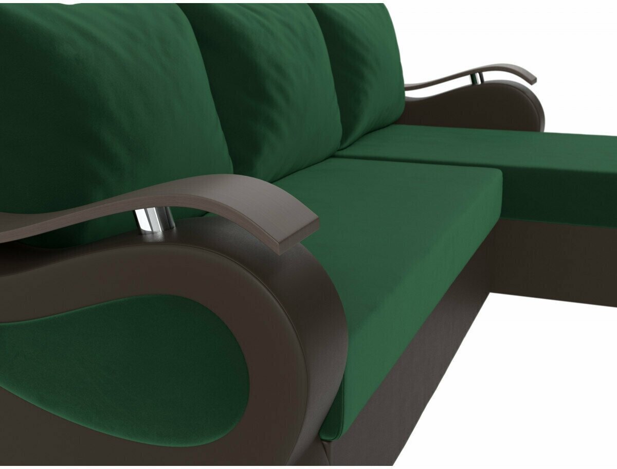 Угловой диван Меркурий Лайт правый угол, Велюр зеленый, Экокожа коричневая 44 999 ₽