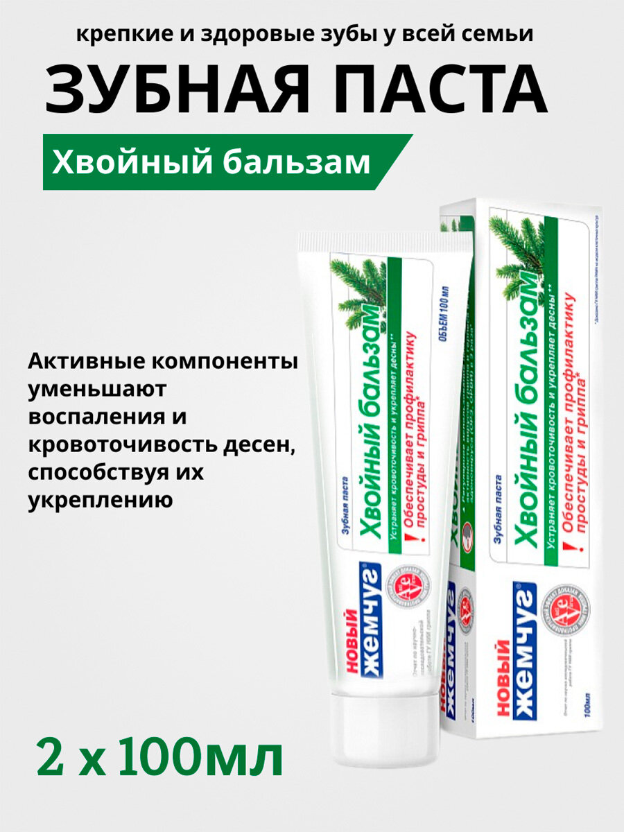 Зубная паста Новый Жемчуг Хвойный бальзам 100 мл. х 2 шт. информация: