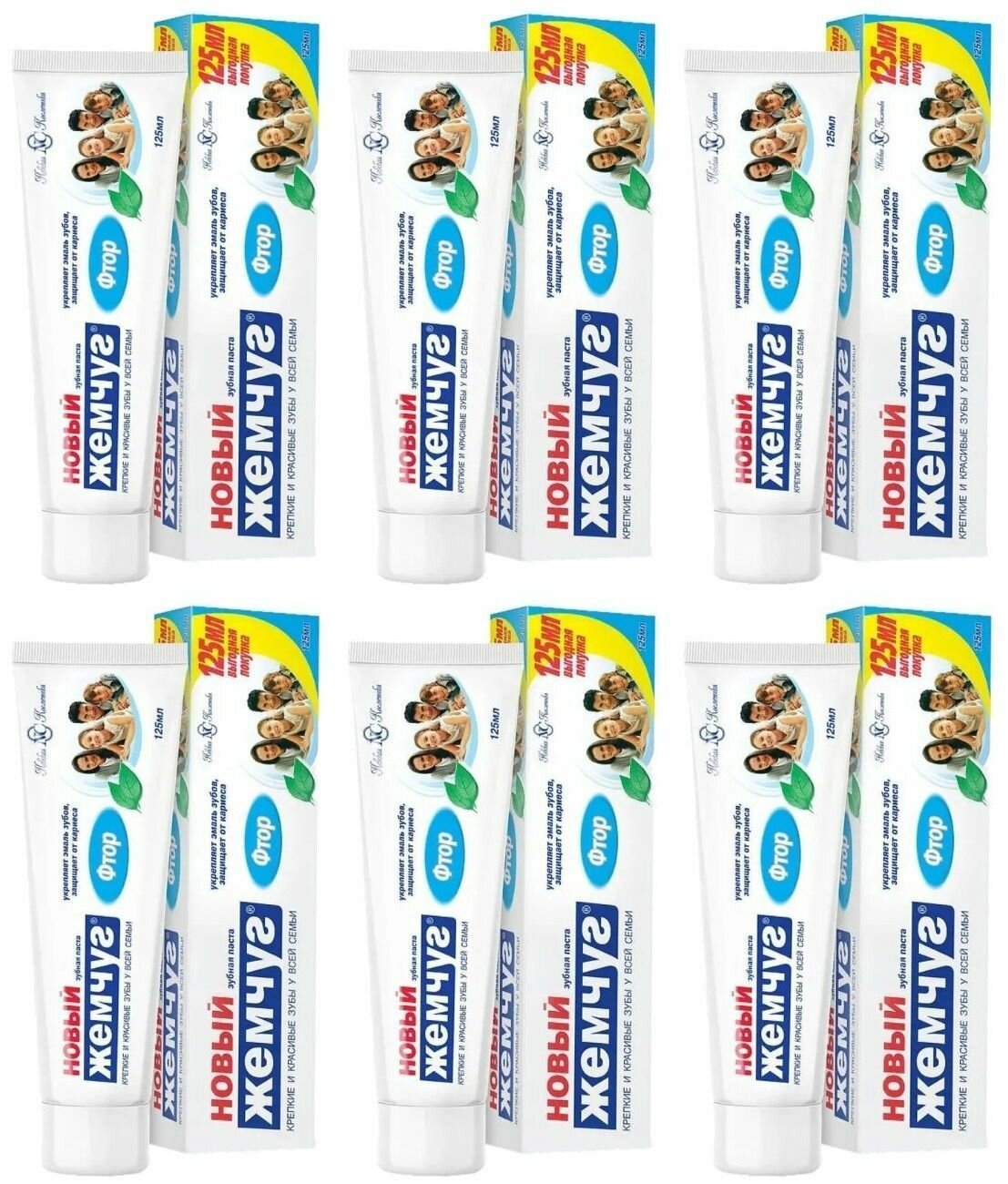 Новый жемчуг Зубная паста Фтор, 125 мл, 6 шт