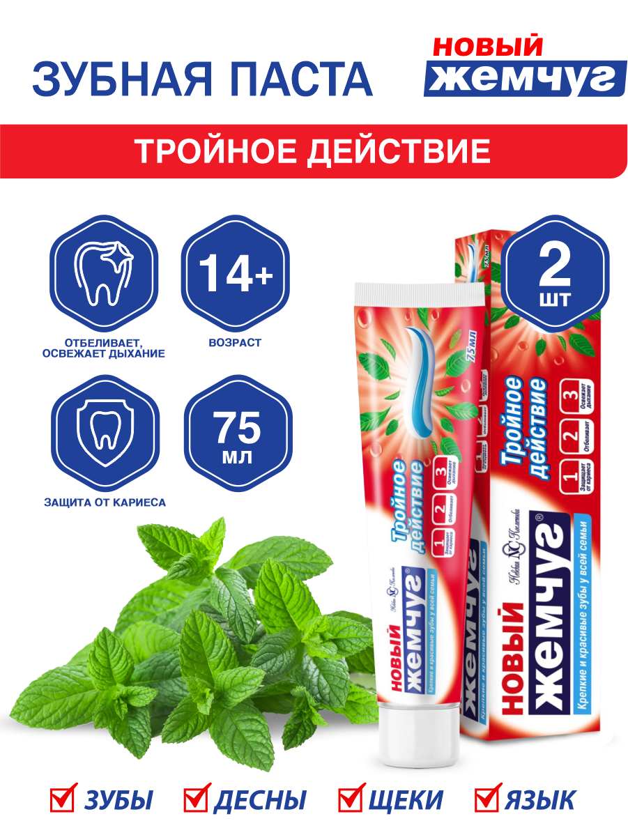Зубная паста Новый Жемчуг Тройное действие 75 мл. х 2 шт. информация: