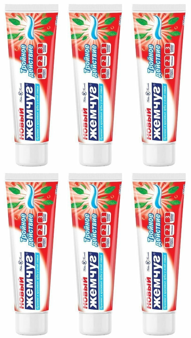 10 цен на Зубная паста Новый Жемчуг Тройное действие 100 мл. х 6 шт.