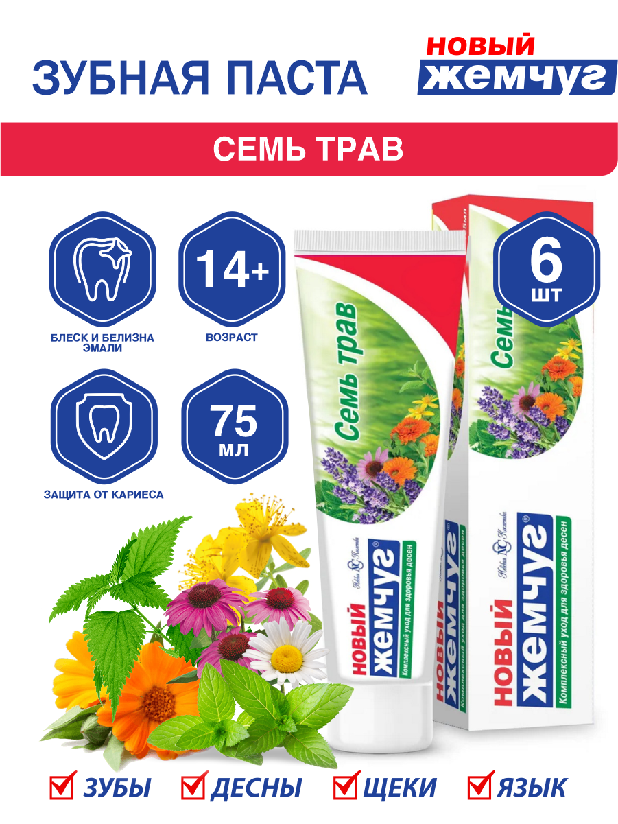 Зубная паста Новый Жемчуг Семь трав 75 мл. х 6 шт. информация: