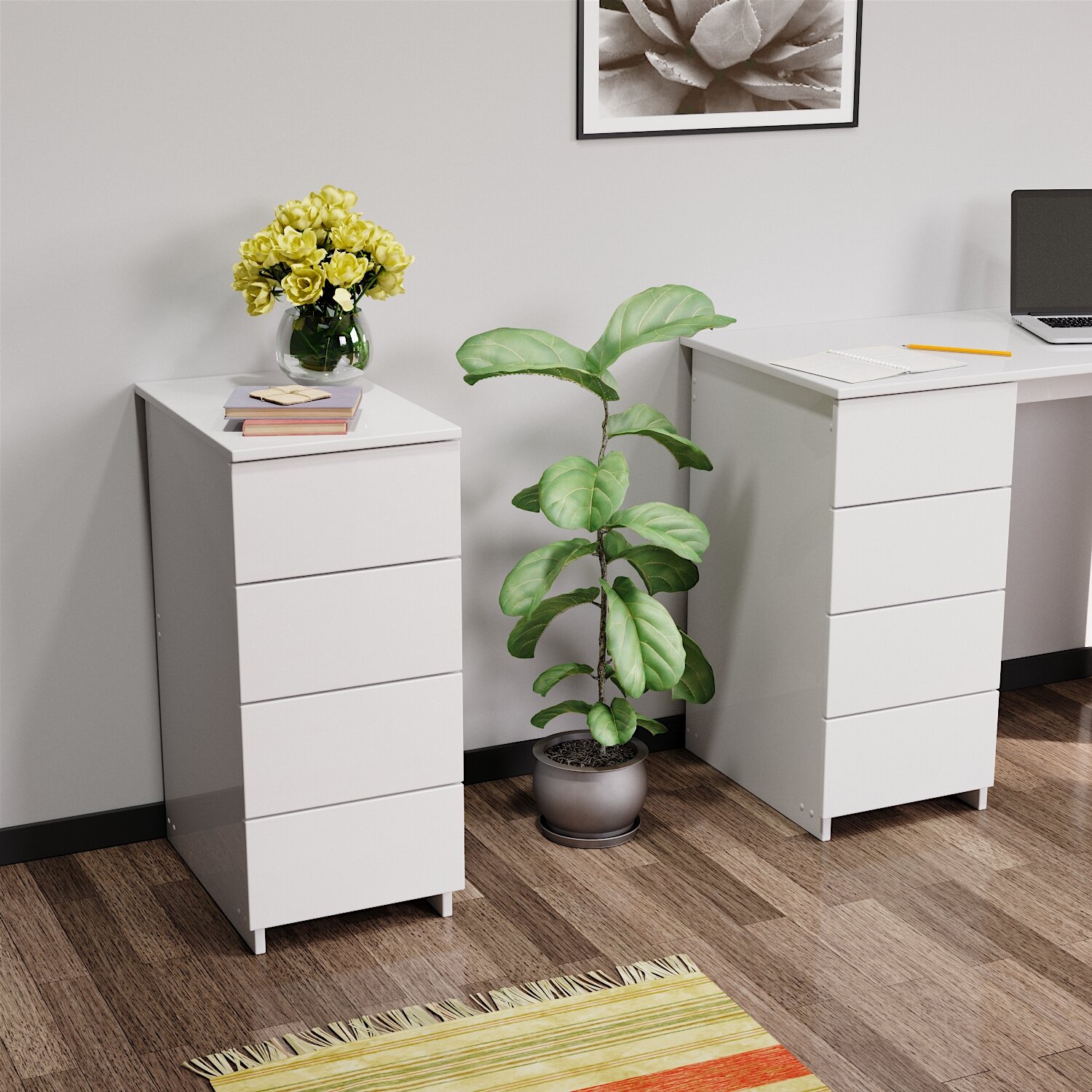 Тумба прикроватная, офисная с ящиками, тумба для спальни, на кухню и ванную белая domokomod c 4 ящиками информация: