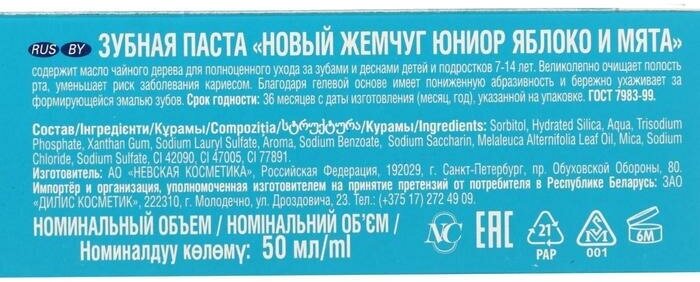 Зубная паста Новый Жемчуг Юниор Яблоко и мята 50 мл. х 4 шт. информация: