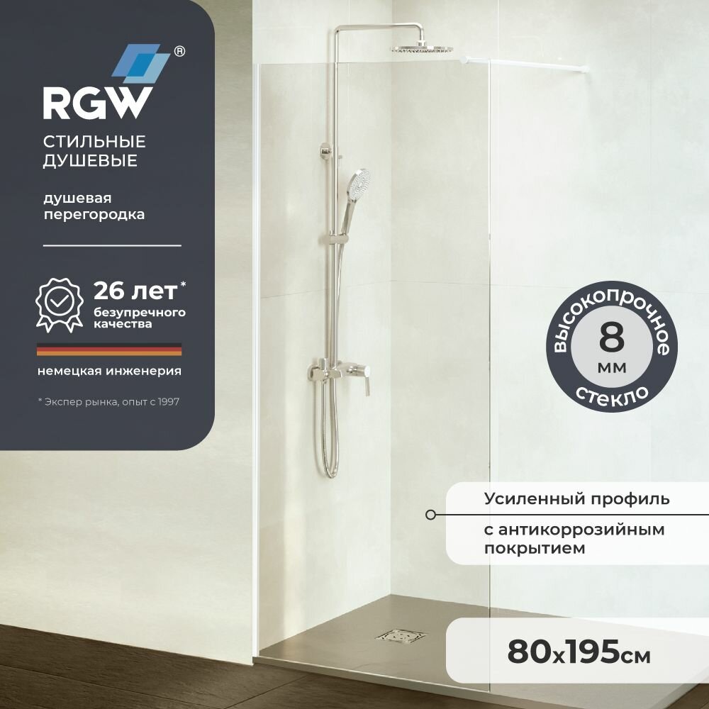 10 цен на Душевая перегородка RGW Walk In 80x195 WA-010-W стекло прозрачное, профиль белый