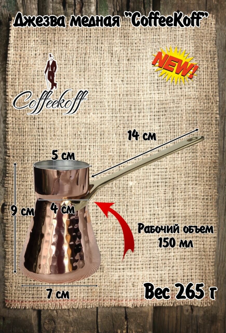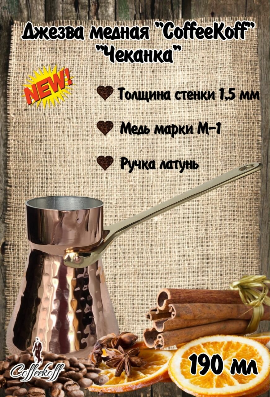 Турка медная CoffeKoff, кофейник медный, 190 мл информация: