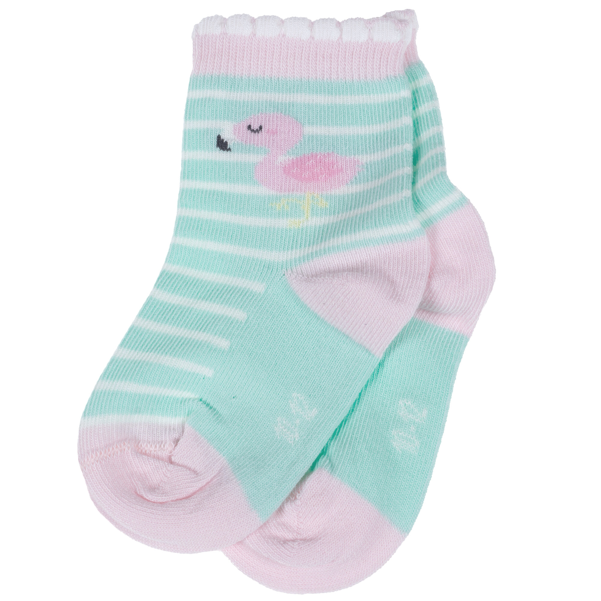 3-Д3-130095Д Комплект из 3 пар детских носков RuSocks (Орудьевский трикотаж) бирюзовые девочка малыши фламинго принт рисунок укороченные хлопок хб хлопковые цветные разноцветные русокс набор упаковка информация:
