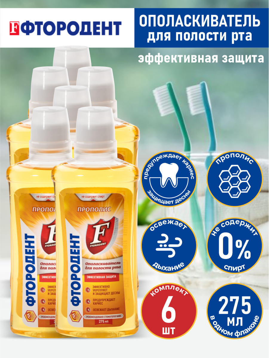 Ополаскиватель для полости рта Фтородент Прополис 275 мл. х 6 шт. информация: