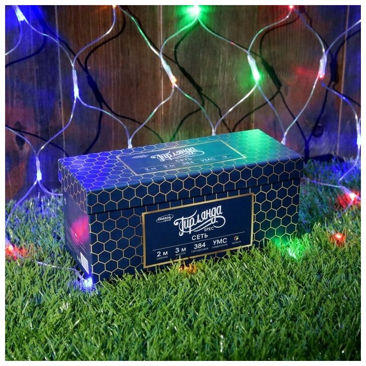 10 цен на Гирлянда "Сеть" 2 × 3 м, IP44, УМС, прозрачная нить, 384 LED, свечение мульти, 220 В