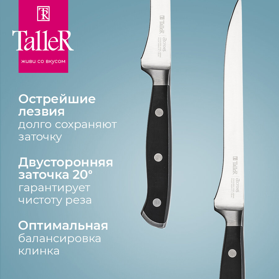 Нож кухонный филейный TalleR TR-22024 Акросс, лезвие 15 см, нержавеющая сталь 768 ₽