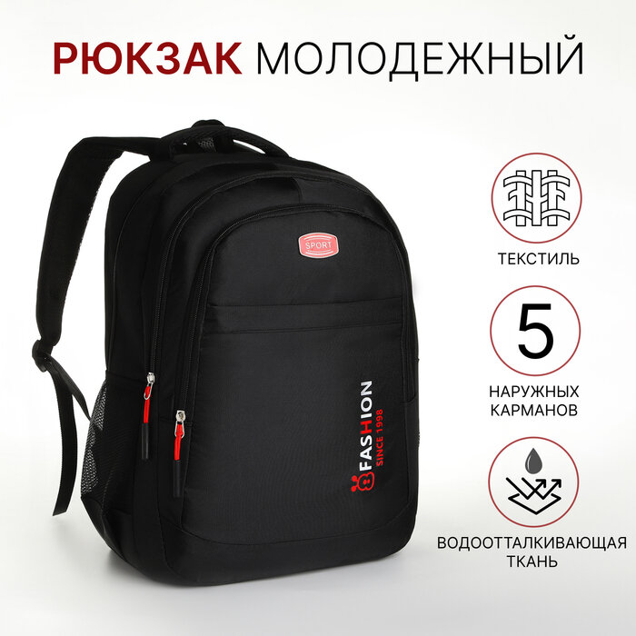 Отзывы на Рюкзак школьный на молнии, 5 наружных карманов, цвет чёрный/красный