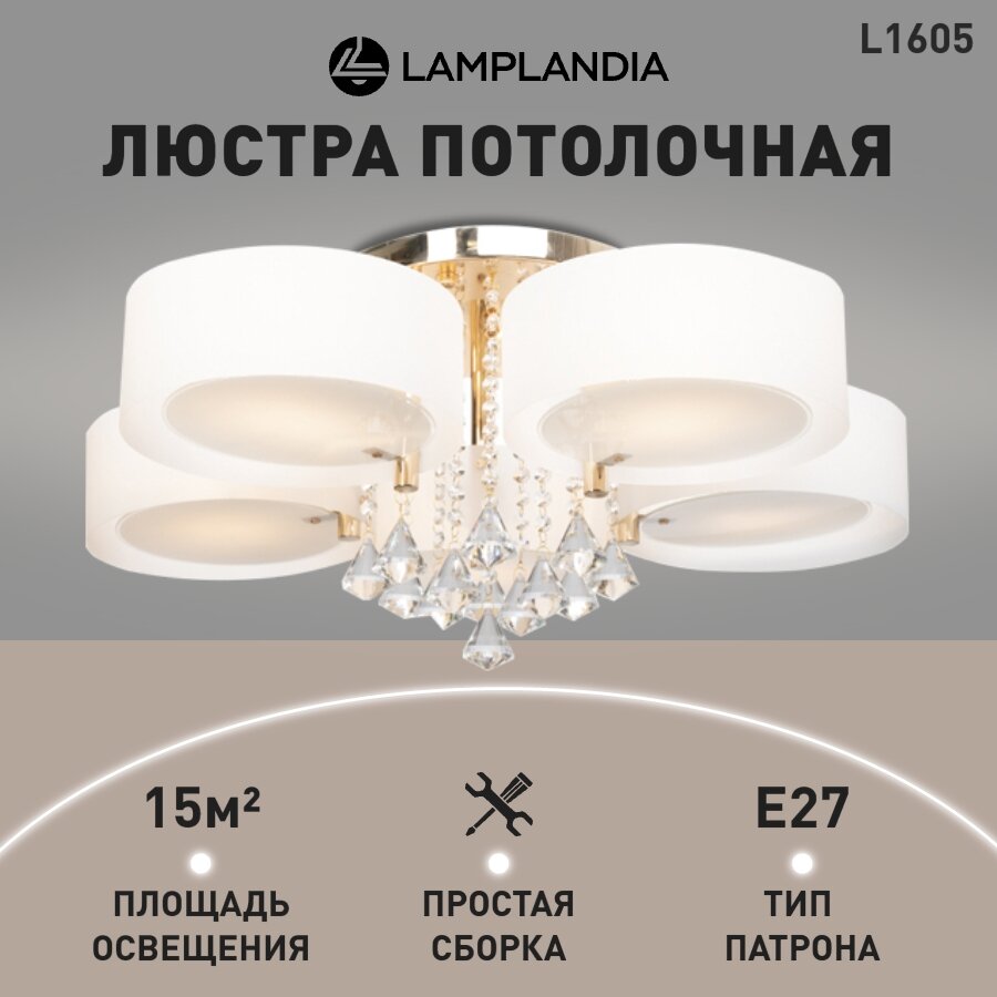 10 цен на Люстра потолочная Lamplandia L1605 LIMA GOLD PLATING, E27*5 макс 40Вт