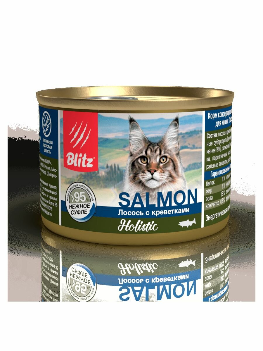 Blitz Консервы для кошек лосось с креветками 200 г 10 шт информация: