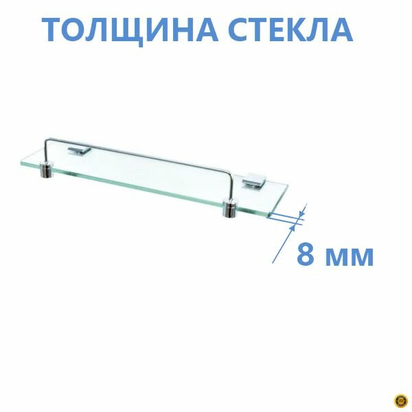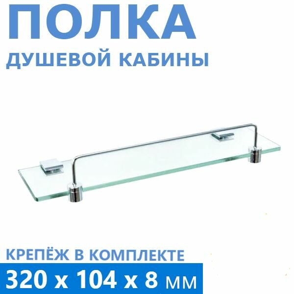 Полка душевой кабины MIRWELL с хромированным блестящим бортиком, толщина стекла 8мм, длина 32см, ширина 10,4см, крепление в комплекте информация: