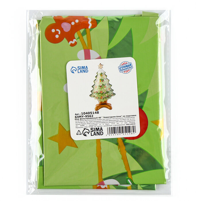 Страна Карнавалия Новый год! Воздушный шар фольгированный 48" «Новогодняя ёлка», на подставке информация: