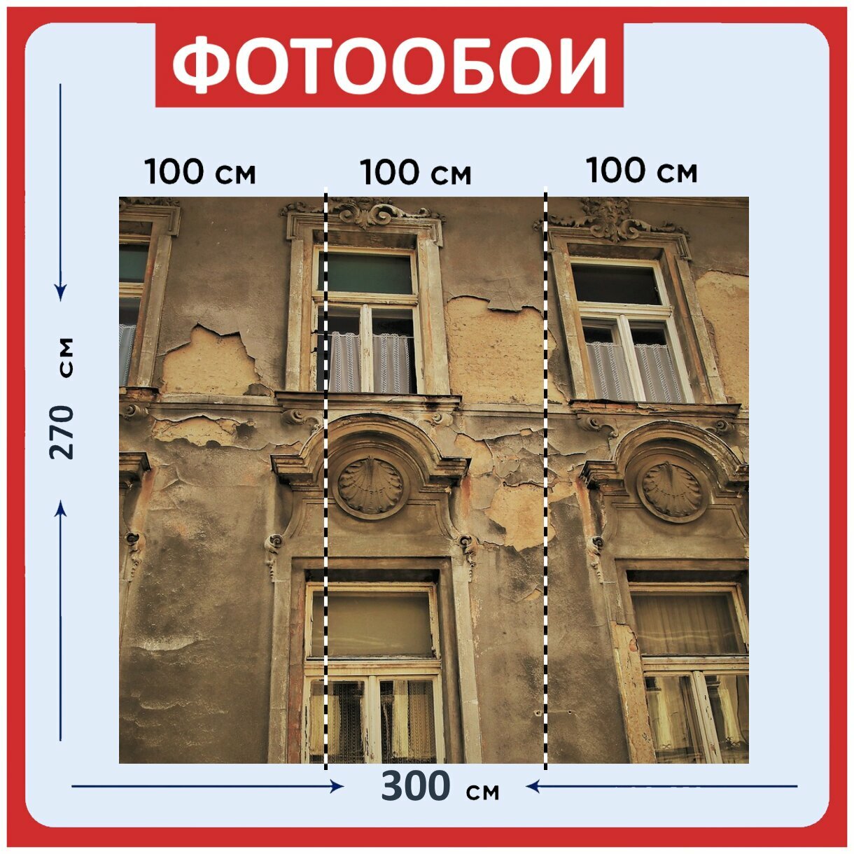 10 цен на Фотообои ударопрочные моющиеся "Старый многоквартирный дом, окно, подоконник" 300x270 см. флизелиновые на стену