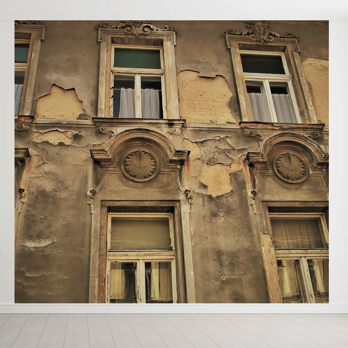 Фотообои ударопрочные моющиеся "Старый многоквартирный дом, окно, подоконник" 300x270 см. флизелиновые на стену информация: