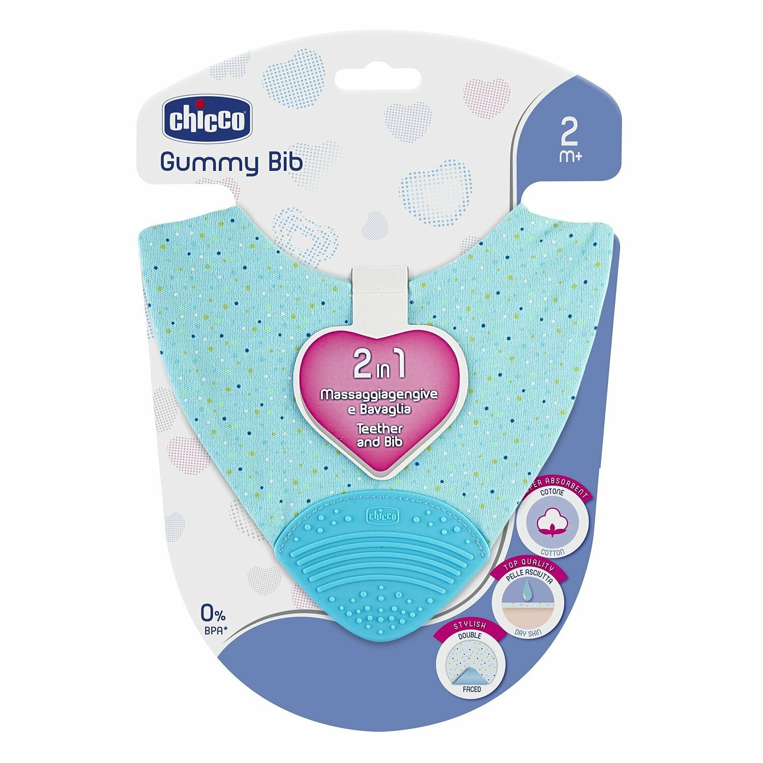 Нагрудник с прорезывателем Chicco Gummy 2-в-1, арт. 00002581200000, 2 мес+, голубой