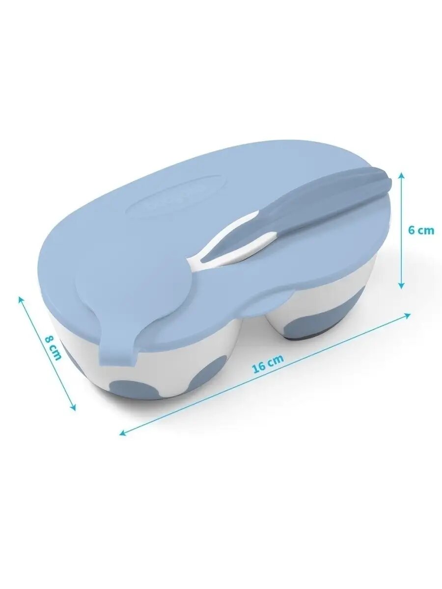Тарелочка Babyono с крышкой и ложечкой на присоске Голубая 1063