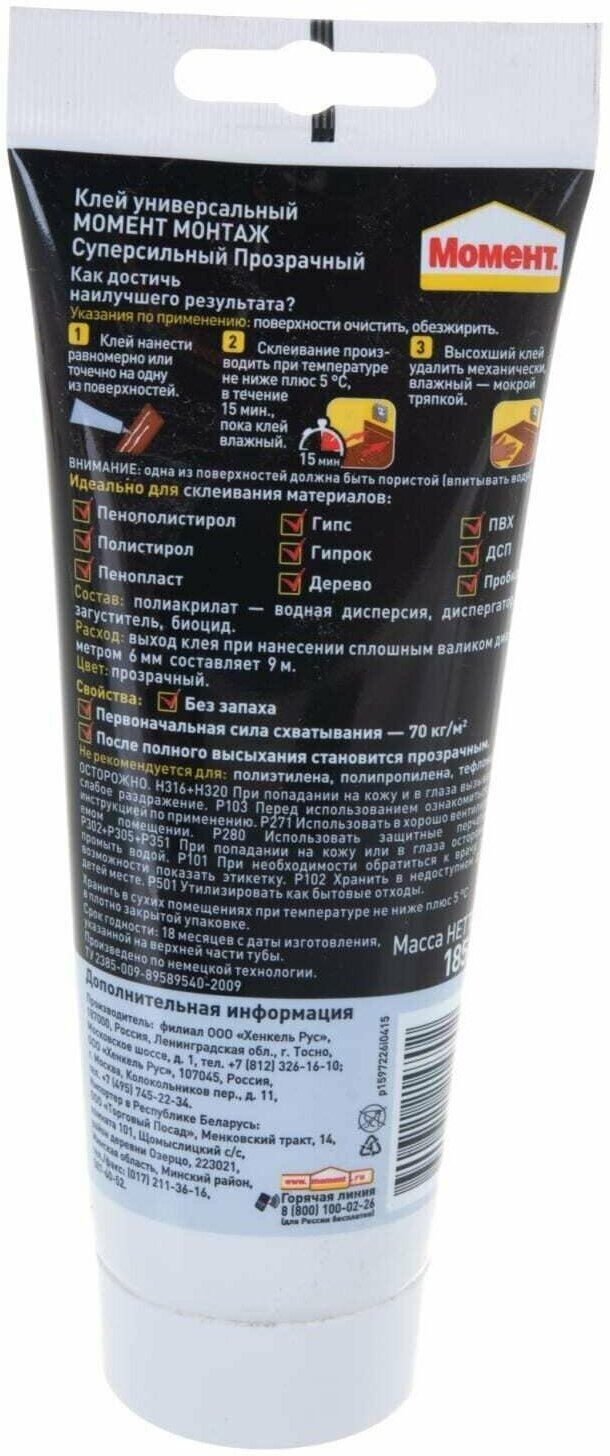 Жидкие гвозди Момент Монтаж МВп-70 185 г информация: