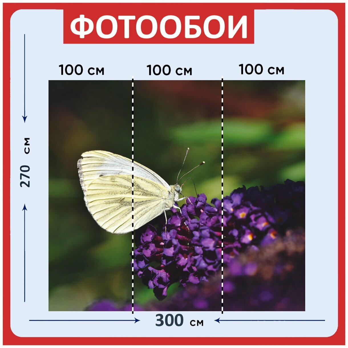 Фотообои ударопрочные моющиеся "Бабочка, цветы, насекомое" 300x270 см. флизелиновые на стену информация: